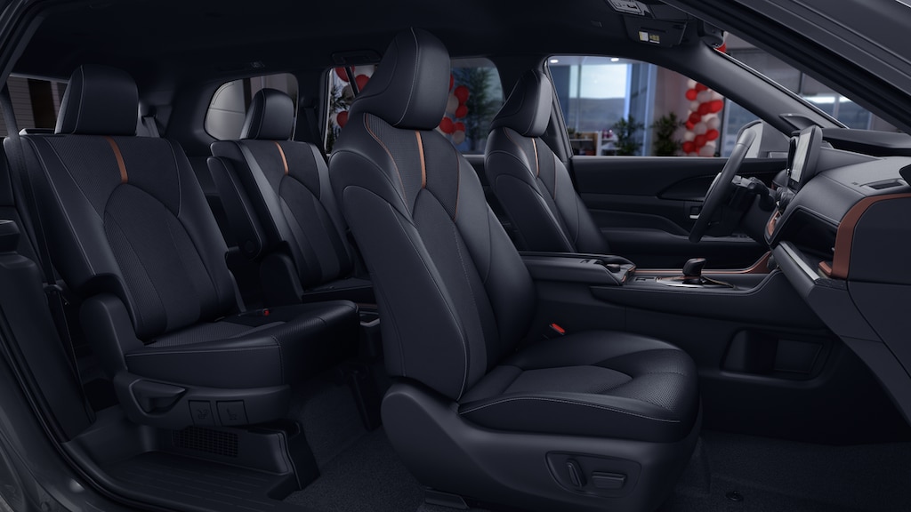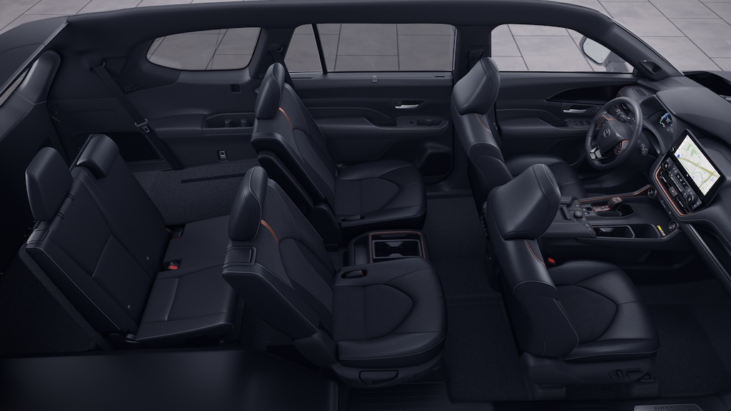 - 7-passenger seating with second-row fold-down captain's chairs and fold-down inboard armrests, adjustable headrests and two cup holders mounted on the floor; and 60/40 split, fold-down third-row seats with sliding headrests and recline function.